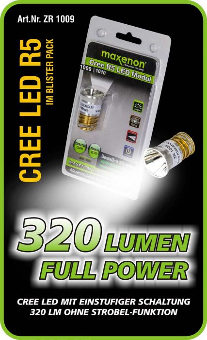 - Der Vorteil dieser LED ist die lange Brenndauer, außerdem kann das Cree Modul mit 0,8-4,2 Volt betrieben werden.